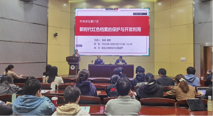 2025年10月20日下午,中国人民大学张斌教授应邀在必赢中国官方网站会议中心思诚厅,以线上线下相结合的方式,为我们师生带来了一场题为“新时代红色档案的保护与开发利用”的专题讲座。现场气氛热烈,吸引了档案系教师、2025级档案学本科生,以及24、25级图书情报专业硕士、信息资源管理学术硕士研究生踊跃参与。讲座由系主任李彩容副教授主持。