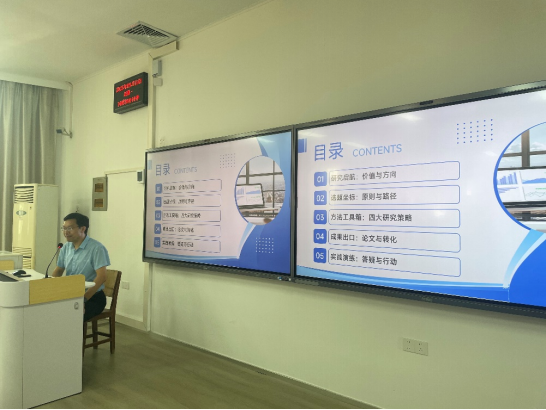 张尊健老师从教研的问题意识与选题创新入手,强调一线教学实践是研究选题的重要来源,鼓励师生关注真实课堂情境,善于从教学互动中发现研究价值。他结合多个案例,如乡土课程资源的运用和跨学科教学实践,说明选题应兼顾科学性、创新性和可操作性。