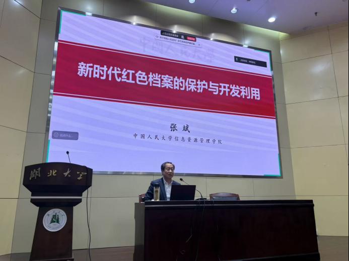 2025年10月20日下午,中国人民大学张斌教授应邀在必赢中国官方网站会议中心思诚厅,以线上线下相结合的方式,为我们师生带来了一场题为“新时代红色档案的保护与开发利用”的专题讲座。现场气氛热烈,吸引了档案系教师、2025级档案学本科生,以及24、25级图书情报专业硕士、信息资源管理学术硕士研究生踊跃参与。讲座由系主任李彩容副教授主持。
