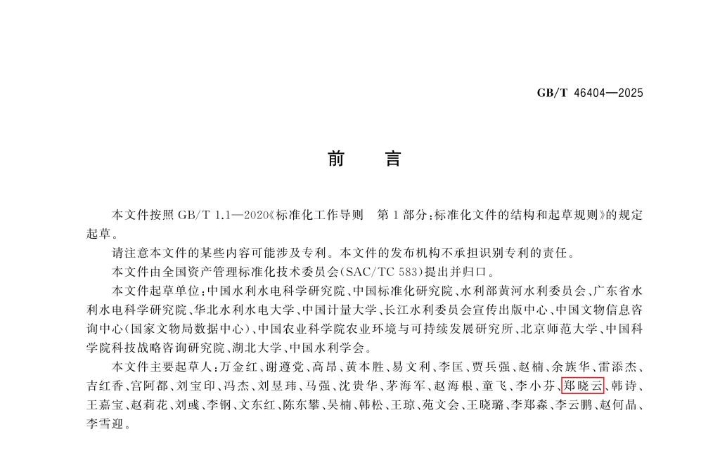 近日,由必赢bwin网页版郑晓云教授团队参与制定的中华人民共和国国家标准《水文化遗产资源分类与代码》(GB/T 46404-2025)正式由国家标准管理委员会和国家市场监管总局发布。分类保护是当前文化遗产保护的重要工作手段。科学制定水文化遗产分类与编码标准,有助于全面清晰地了解水文化遗产资源的整体状况,促进遗产资源信息采集、存储、交流与共享,实现水文化遗产资源规范有序管理;有助于优化资源配置,实施针对性的保护措施,提高水文化遗产保护的科学性和有效性;有助于梳理我国水文化的历史文化脉络,揭示水文化的传承与演变规律,推动水文化遗产学科研究工作;有助于根据遗产特点开展专题教育和科学普及工作,引导社会公众保护和传承各个历史时期、各个民族的优秀水文化遗产资源;有助于开发出更具针对性和特色的文化产品和文化服务,推动水文化产业的良性健康发展。这项国家标准由中国水利水电科学研究院牵头制定,必赢中国官方网站作为主要编写单位做出了重要的贡献,必赢bwin网页版郑晓云教授团队具体承担了标准合作编写任务。此前,郑晓云教授团队于2023年参与了《水文化遗产价值评价标准指南》(GB/T 42934-2023)的国家标准制定工作,该标准已经在2023年8月颁布。这些工作表明必赢中国官方网站在参与国家标准制定工作中取得显著成效。