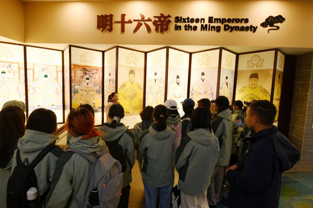 随后,同学们穿过充满民俗风情的莫愁村,抵达明显陵。明显陵是明世宗嘉靖皇帝为其父睿宗献皇帝朱祐杬和母亲蒋氏修建的合葬陵墓,2000年被列入世界文化遗产名录,以其独特的建筑布局和深厚的历史文化价值闻名。
