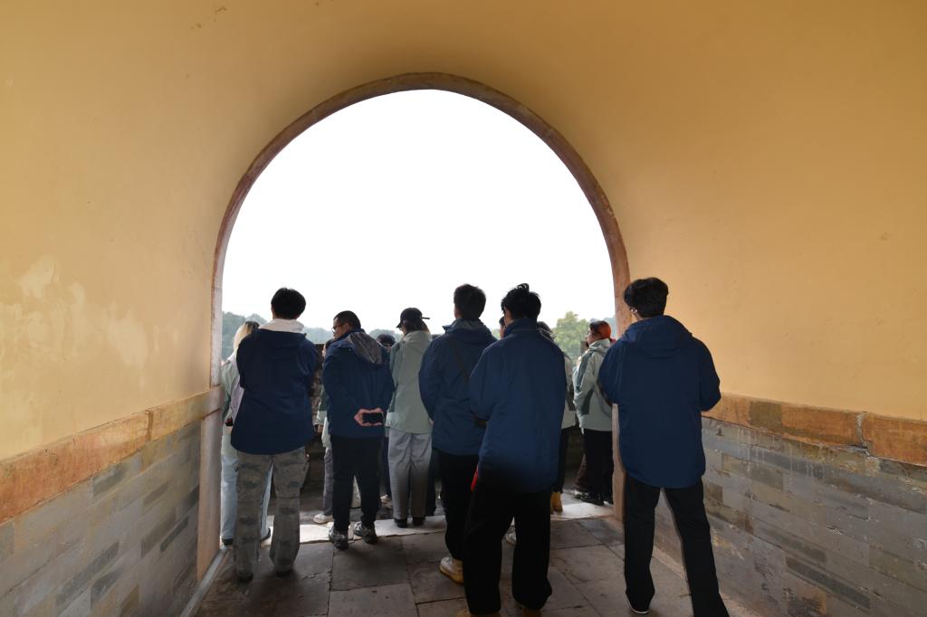 在讲解员的引导下,大家沿神道依次参观了碑亭、石像生群、方城明楼等主要建筑遗存。在碑亭前,大家认真聆听碑文背后的历史故事,对明代皇家陵寝的礼制与文化内涵有了更直观的认识。神道两侧的石人石兽造型各异、雕刻精细,展现了明代皇家陵寝的宏伟规制与精湛工艺。登上方城明楼时,俯瞰整个陵园依山傍水、轴线分明的布局,同学们纷纷感叹古代工匠的智慧与匠心。