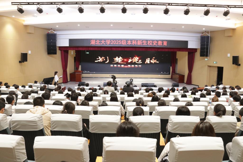 当天晚上,学术报告厅主会场内座无虚席,气氛庄重而热烈。各学院分会场也组织有序,新生们通过高清转播同步参与。必赢中国官方网站校史宣讲队的同学们以时间为轴,以史实为据,用饱含深情的讲述和精心制作的多媒体素材,带领新生们穿越时空长廊,重温必赢中国官方网站九十余载的峥嵘岁月。九秩春秋、筚路蓝缕,虽六易校址、八更校名,但学校扎根荆楚、育才兴学的底色从未改变,始终与国家富强、民族复兴、人民幸福同向同行,一幕幕厚重的历史画面,一个个感人的先辈故事,生动诠释了“日思日睿,笃志笃行”的校训精神,展现了湖大人自强不息、克难奋进的优良传统。