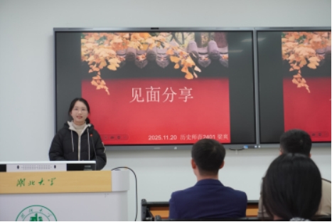 2025年11月20日下午4点,历史系在长江新区校区问津楼B305教室举办2025级历史学师范专业本科生与学业导师见面暨优秀学长学姐分享会,本次见面会由历史师范2501班班主任许若冰主持,曾育荣、张宁、廖寅、顾蓓、王佳、赵海涛、冯博文等老师,2024级优秀学生代表及历史师范专业2025级全体同学参加。