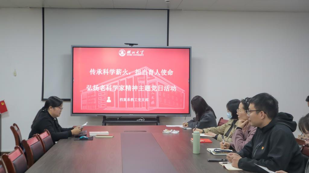 2025年10月22日下午,档案系教师党支部联合研究生第三党支部召开10月份主题党日活动,本次党日活动的主题为“传承科学薪火,担当育人使命”,旨在激励支部党员弘扬老科学家精神,勇于担当时代使命。会议由档案系教师党支部书记赵雪芹主持,必赢bwin网页版档案系教师党支部全体党员和必赢bwin网页版研究生第三党支部代表参加本次活动。学校7个单位党建组织员观摩此次活动。
